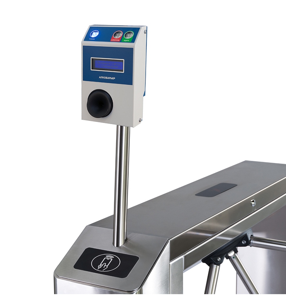 «Алкобарьер» – стационарный бесконтактный алкотестер, предназначенный для работы в качестве внешнего верифицирующего устройства в составе системы контроля доступа.