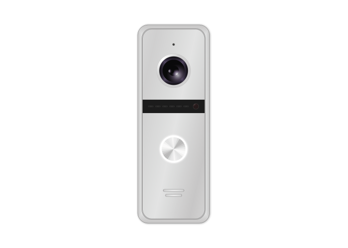 Встроенная видеокамера с объективом 1.9 мм, дающим сверхширокий угол обзора 140°, может передавать качественную картинку в разрешении Full HD 1080p на монитор видеодомофона и/или видеорегистратора. Тип транслируемого видеосигнала (1080p/720p/CVBS) может быть выбран с помощью специального переключателя на задней стороне вызывной панели, что позволяет работать ей практически с любым 4-х проводным видеодомофоном.