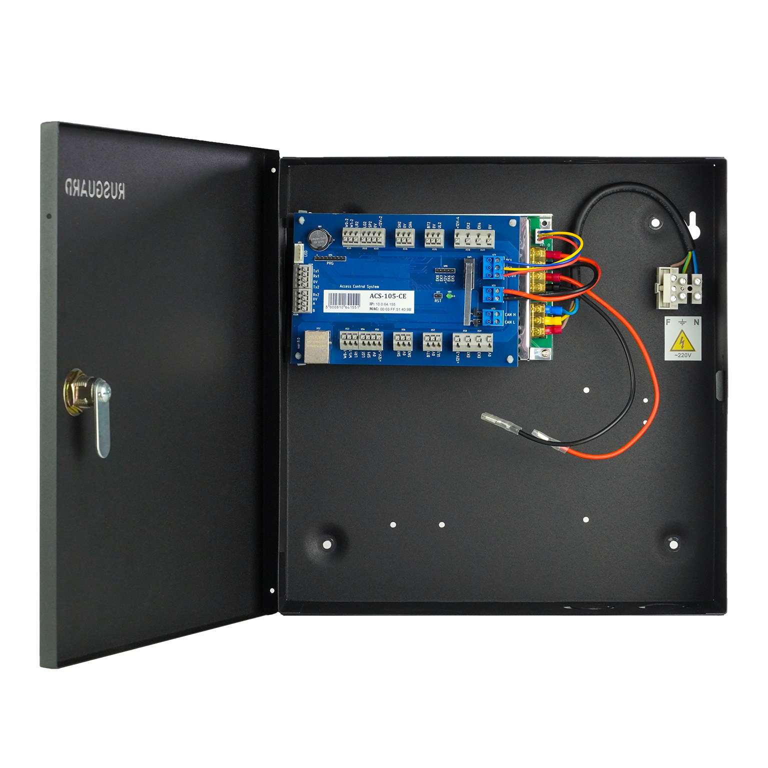 Контроллер имеет металлический корпус, поэтому он защищен от внешних воздействий лучше, чем модель в пластиковом корпусе (ACS-102-CE-ВM (POE)). Механический замок позволяет ограничить доступ к плате контроллера и другим элементам коммутации.